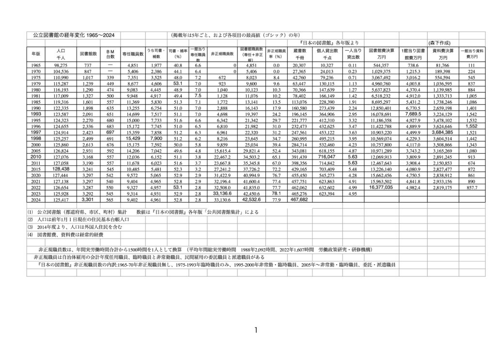 •  公立図書館の経年変化 1965〜2024